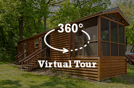 This cabin sleeps 5 and includes a private bedroom with a pyramid-style bunk bed (double on bottom, single on top) In the living area is a full size futon. Each rental includes a TV with Dish Network, heating, air conditioning, and a ceiling fan. Kitchen includes pots, pans, dishes, utensils, coffee maker, toaster, microwave, stove top, refrigerator, dish soap, and paper products. These rentals do not have ovens. Outside is a propane BBQ grill. Linens are NOT included; however, pillows are.